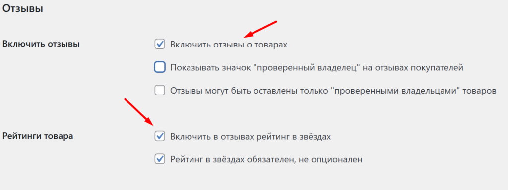- Отметьте галочкой пункт Включить в отзывах рейтинг в звёздах.
