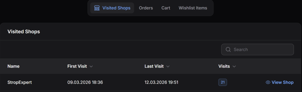 - Visited stores: displays the dates of the first and last visits, as well as the total number of visits.